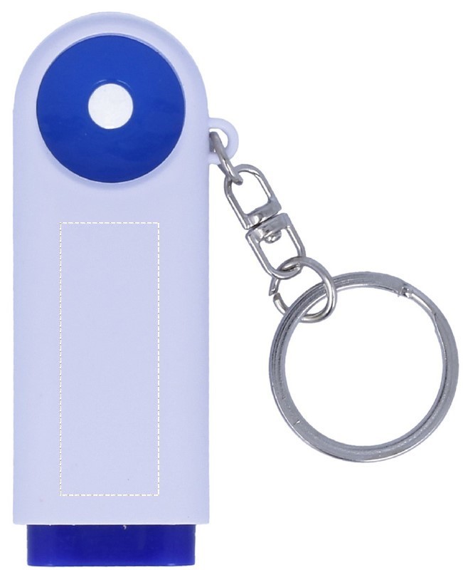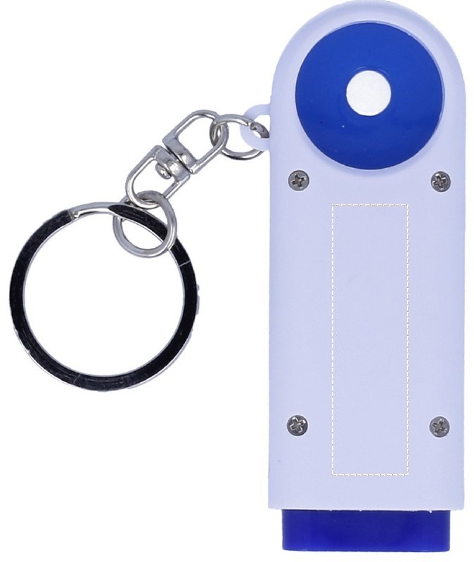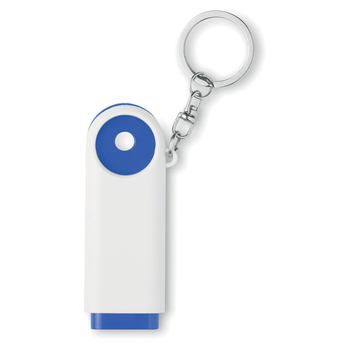 Brelok na klucze wykonany z plastiku z latarką (2 LED) i żetonem do wózków.