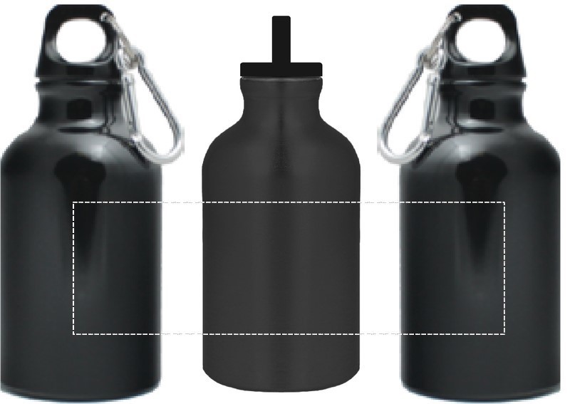 Butelka aluminiowa (pojedyncze ścianki) z karabińczykiem. Pojemność: 300 ml. Karabińczyk nie jest przeznaczony do wspinaczki (nie do profesjonalnego użycia).