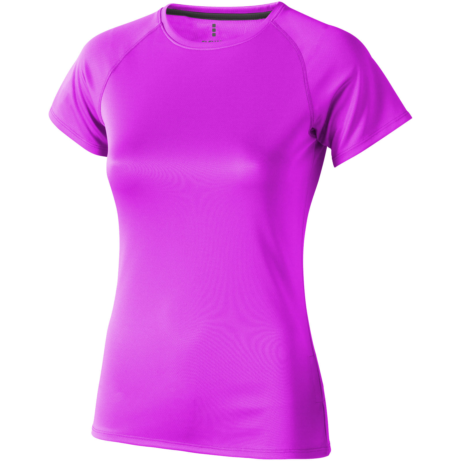 Kołnierzyk z tego samego materiału . Okrągły kołnierzyk. Reglanowe rękawy. Wąski ścieg flatlock . Satynowa taśma wzmacniająca w kołnierzyku. Metka wdrukowana transferem dla lepszego komfortu. Odblaskowe wykończenia. Splot siateczkowy z wykończeniem cool fit100% Poliester, 145 g/m2.