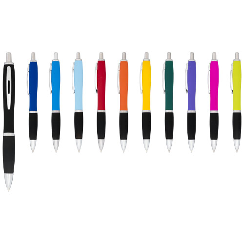Włączany przyciskiem długopis Nash z miękkim w dotyku, kolorowym korpusem, dostępny w żywych kolorach. W zestawie czarny wkład. Aluminium , Plastik silikonowy.