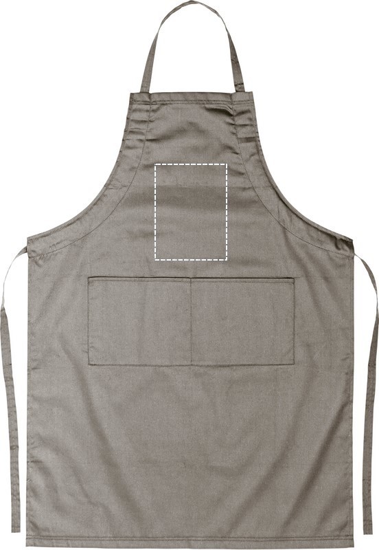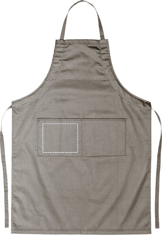 Fartuch kuchenny z dwiema kieszeniami na przodzie. Materiał o gramaturze 190 gr/m², skład: 10% bawełna, 90% poliester. Regulowana wysokość.