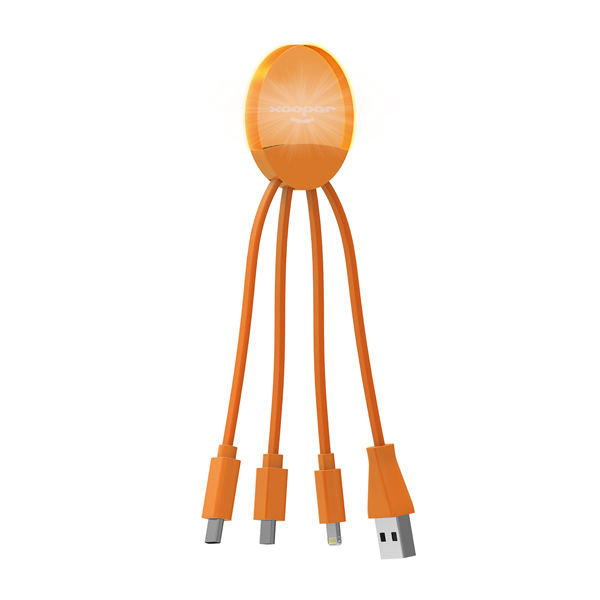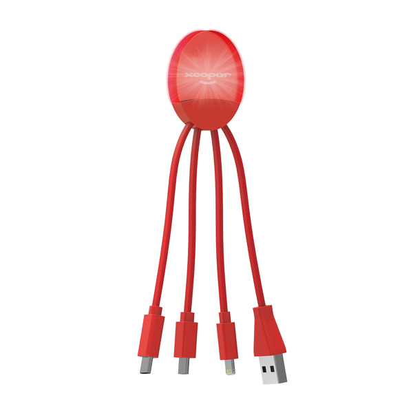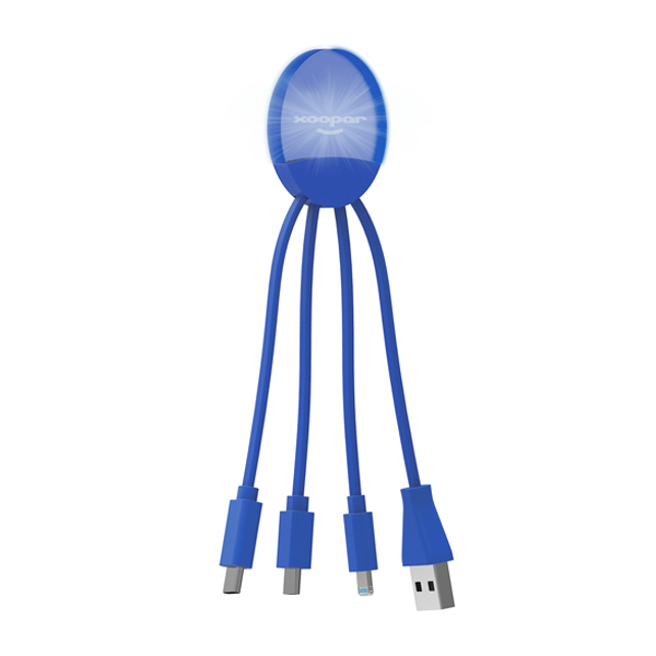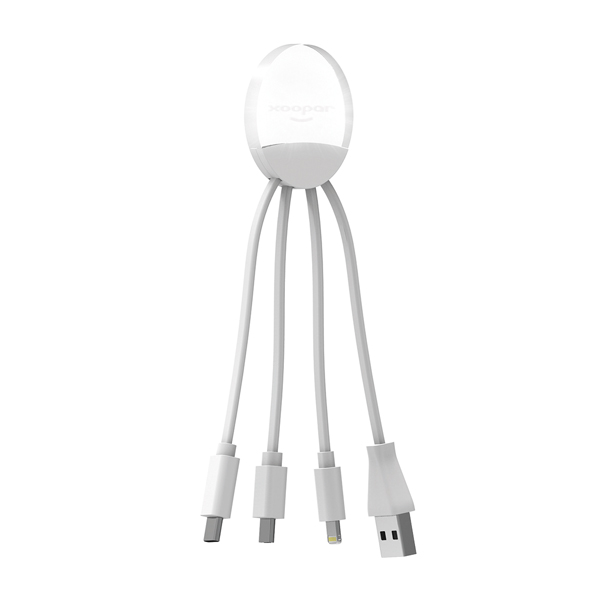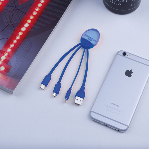 Adapter LED z kolekcji ILO idealny do ładowania smartfonów i tabletów, gdy brakuje nam ładowarki. Za pomocą czterech popularnych łączy: USB, Micro USB, USB-typ C, Linghtning zasili nawet trzy różne urządzenia jednocześnie. Jego niewątpliwą ozdobą jest błyszczący niczym kryształ akrylowy owal – elegancki panel reklamowy podświetlany diodami LED. ILO pozwala uzyskać spektakularny efekt reklamowy, ponieważ wewnątrz akrylu umieścimy grawerem dowolne logo. Po podłączeniu kabelków do źródła zasilania logo świeci razem z całym panelem. Adapter LED ILO to jeden z najatrakcyjniejszych współczesnych niezbędników na rynku reklamowym.