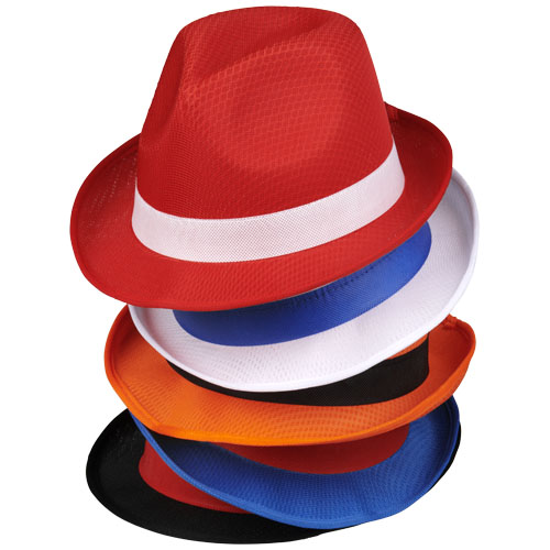 Kapelusz Trilby z poliestru, obwód głowy 58 cm. Rozmiar uniwersalny. Kapelusze można opatrzyć wstążką z nadrukowanym logo z polipropylenu o gramaturze 100 g/m². Tkanina100% Poliester.