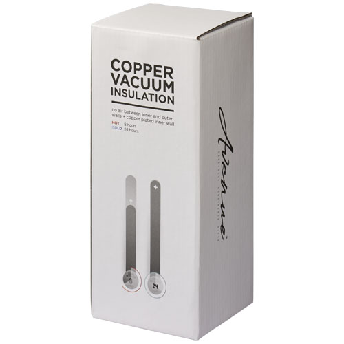 Ten wytrzymały kubek idealnie sprawdzi się w podróży i zmieści się w większości uchwytów. Wieczko szczelnie przylega do kubka, posiada otwieranie typu „flip-top”. Kubek posiada konstrukcję próżniową z podwójnymi ściankami i miedzianą izolacją, które utrzymują napoje gorące przez 8 godzin, a zimne przez 24 godziny. Taka konstrukcja zapobiega kondensacji na zewnątrz kubka. Pojemność to 500 ml. Całość zapakowana jest w pudełko upominkowe Avenue. Stal nierdzewna.
