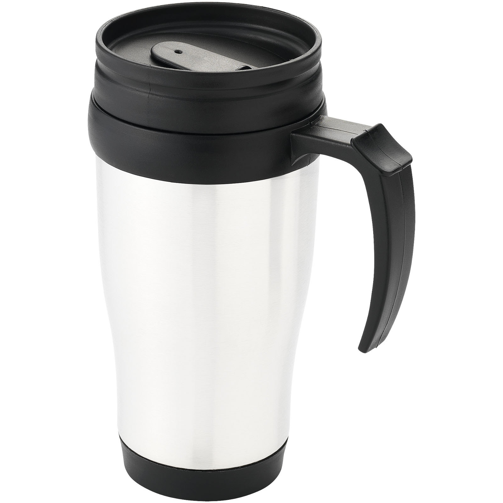 Kubek o podwójnych ściankach z przekręcanym wieczkiem i przesuwanym zamknięciem. Pojemność 400 ml. Polipropylen.