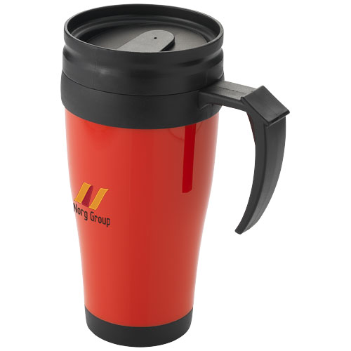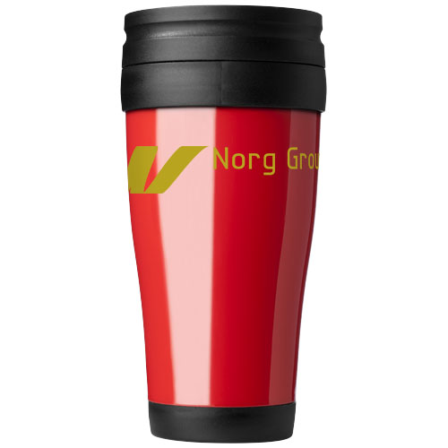 Kubek o podwójnych ściankach z przekręcanym wieczkiem i przesuwanym zamknięciem. Pojemność 400 ml. Polipropylen.