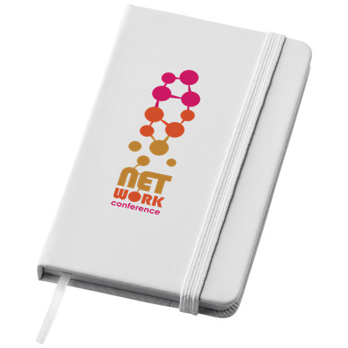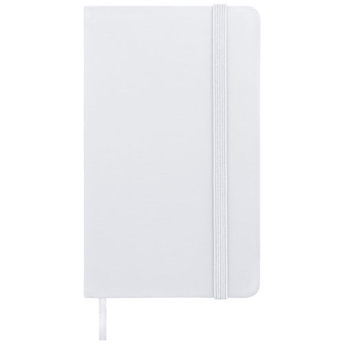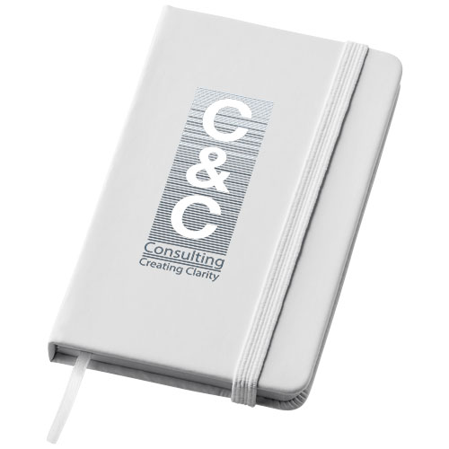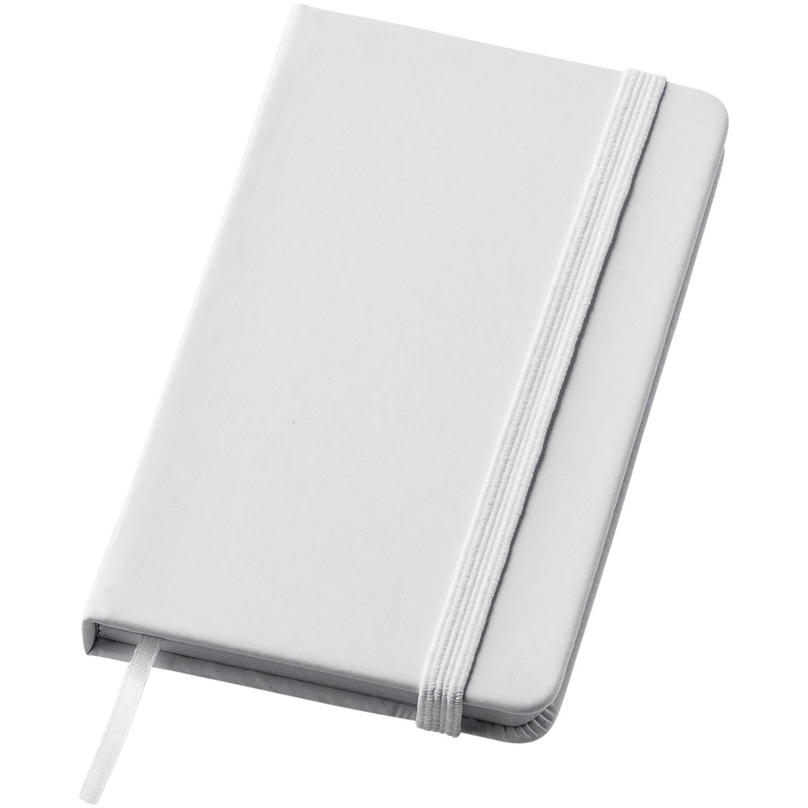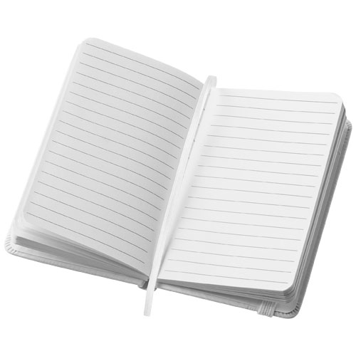 Notatnik A7 z zamknięciem elastycznym i tasiemką w tym samym kolorze. 60 kartek w linie (gramatura 60 g/m²). Karton pokryty PVC.