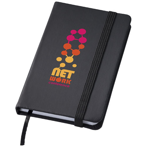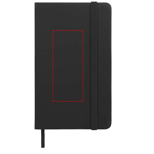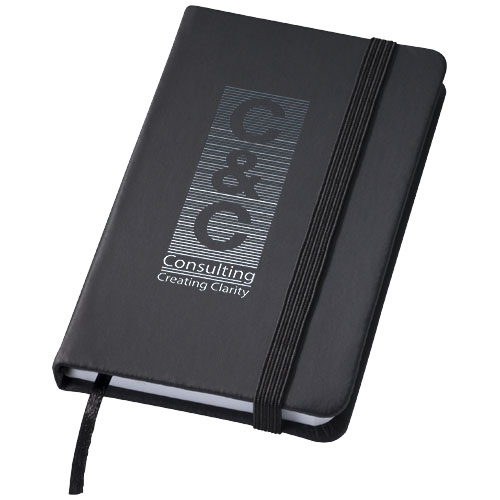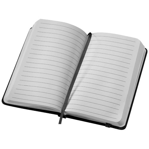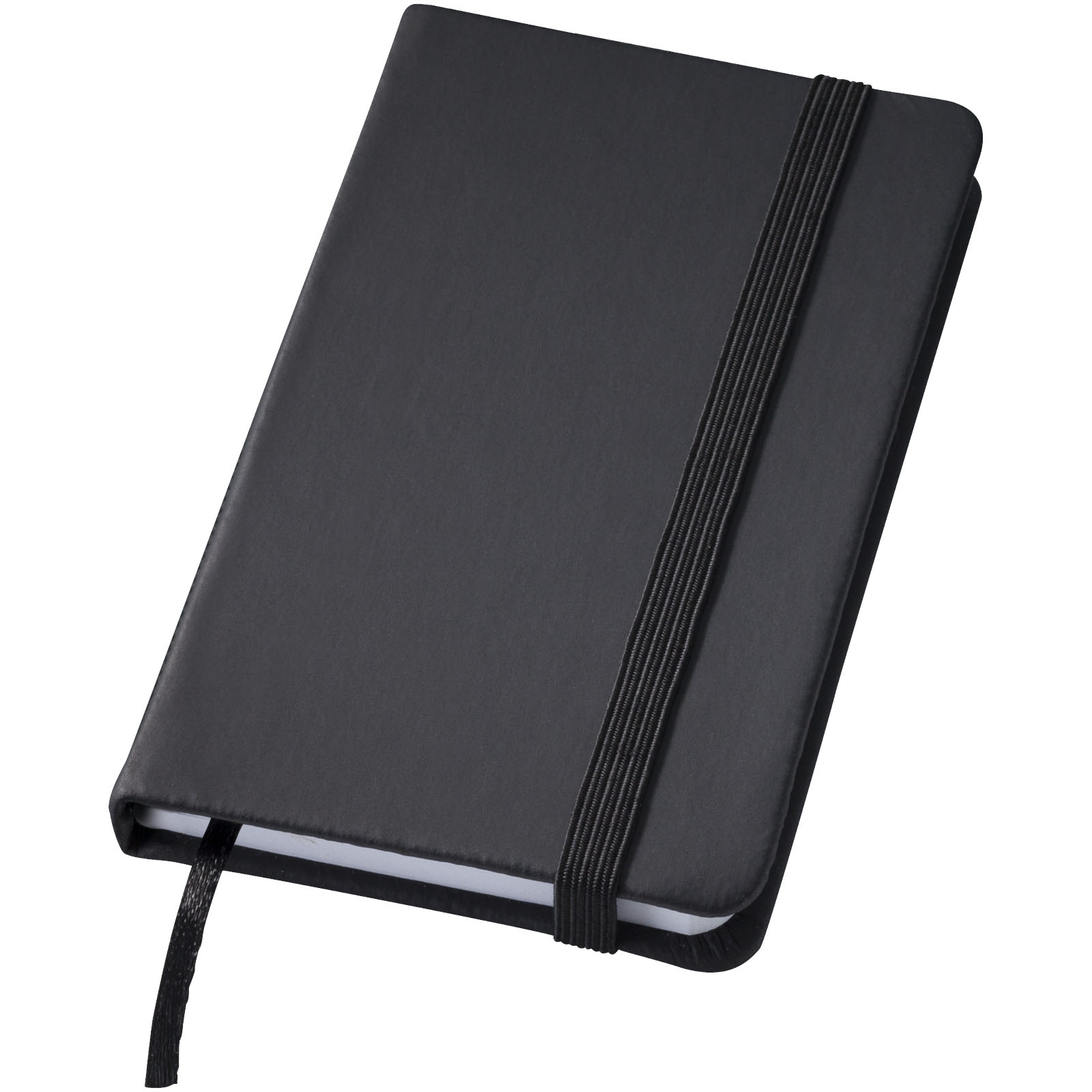 Notatnik A7 z zamknięciem elastycznym i tasiemką w tym samym kolorze. 60 kartek w linie (gramatura 60 g/m²). Karton pokryty PVC.