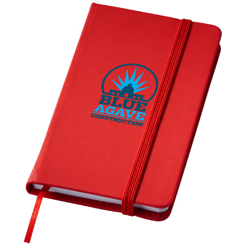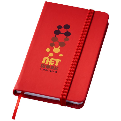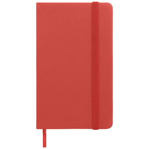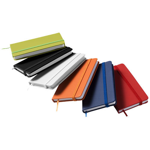 Notatnik A7 z zamknięciem elastycznym i tasiemką w tym samym kolorze. 60 kartek w linie (gramatura 60 g/m²). Karton pokryty PVC.