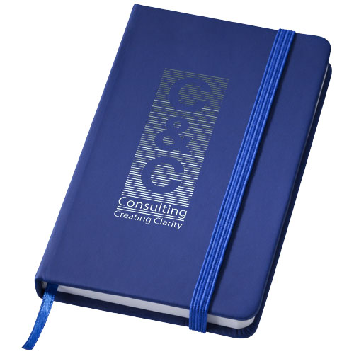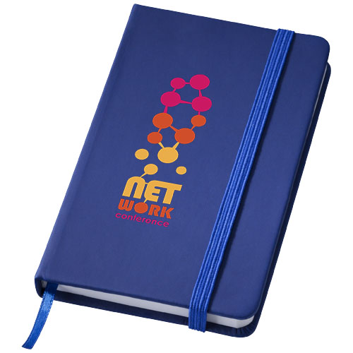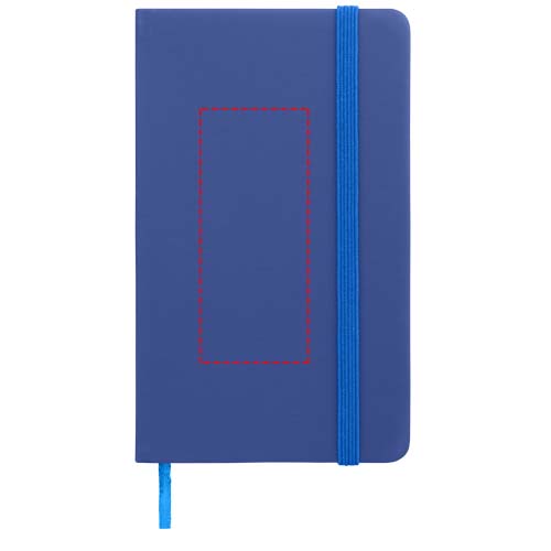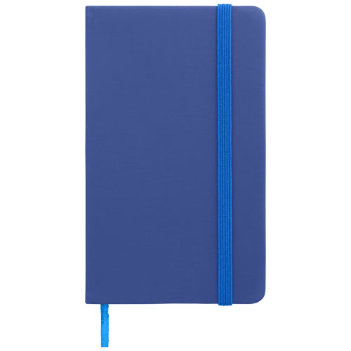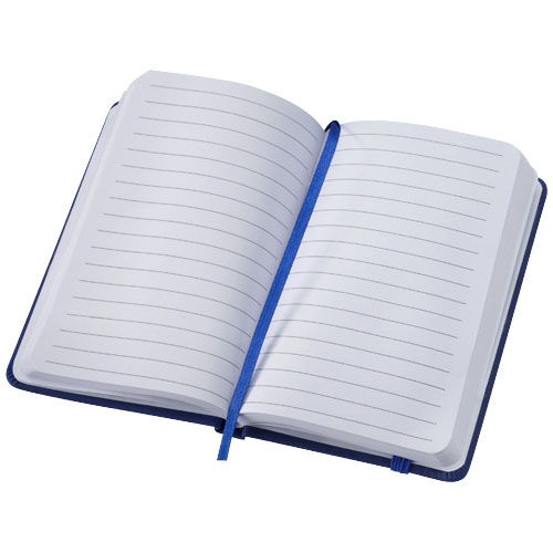 Notatnik A7 z zamknięciem elastycznym i tasiemką w tym samym kolorze. 60 kartek w linie (gramatura 60 g/m²). Karton pokryty PVC.