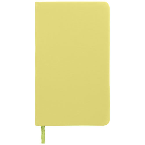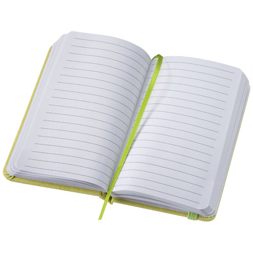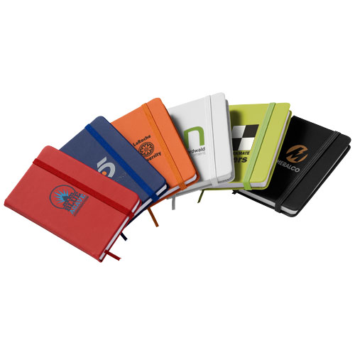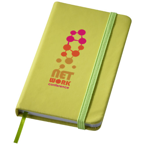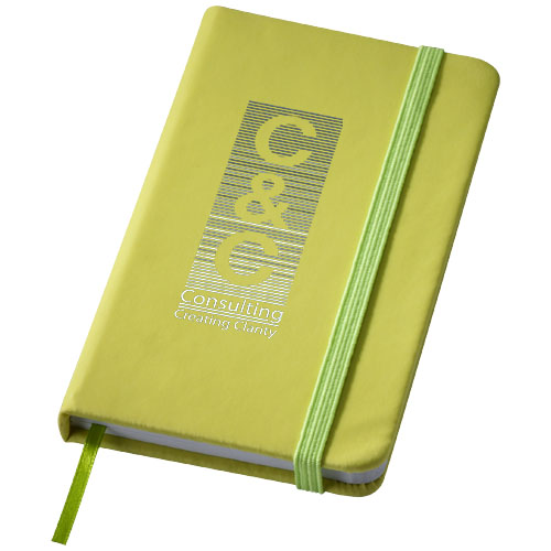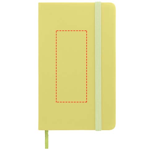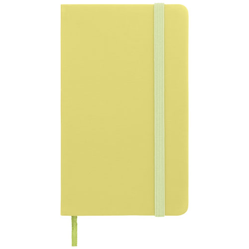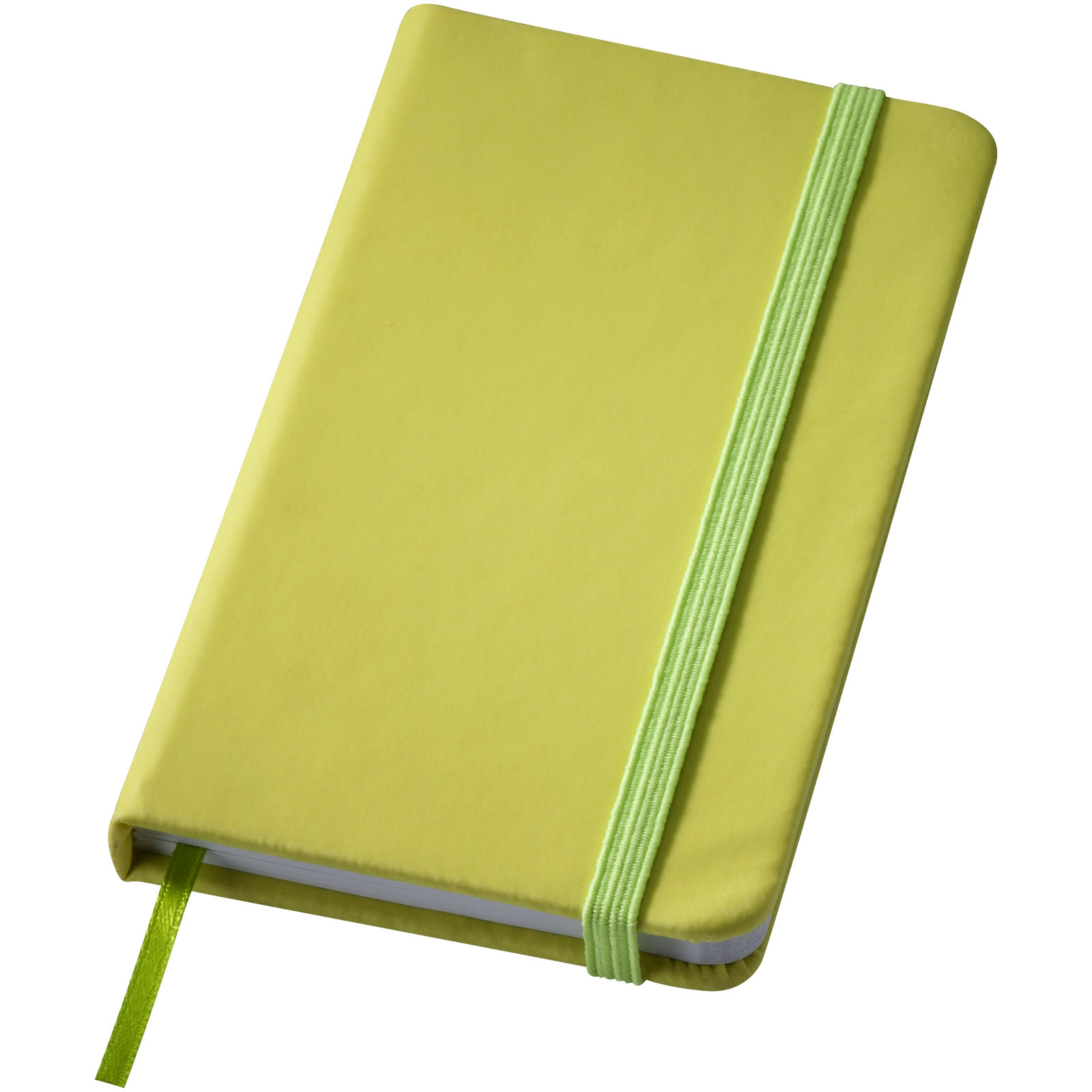 Notatnik A7 z zamknięciem elastycznym i tasiemką w tym samym kolorze. 60 kartek w linie (gramatura 60 g/m²). Karton pokryty PVC.