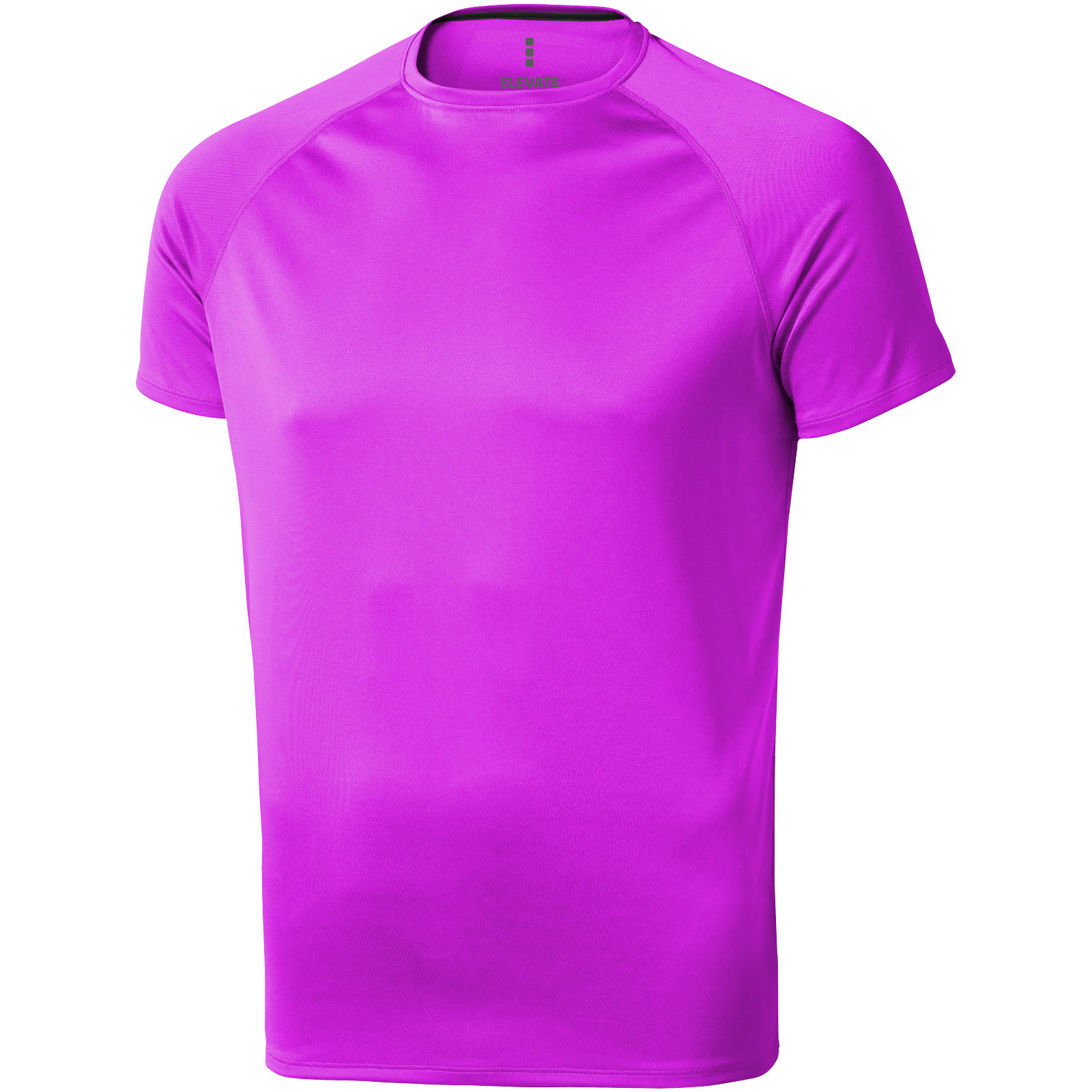 Kołnierzyk z tego samego materiału . Okrągły kołnierzyk. Reglanowe rękawy. Wąski ścieg flatlock . Odblaskowe wykończenia. Satynowa taśma wzmacniająca w kołnierzyku. Podwójny scieg. Metka wdrukowana transferem dla lepszego komfortu. Splot siateczkowy z wykończeniem cool fit100% Poliester, 145 g/m2.