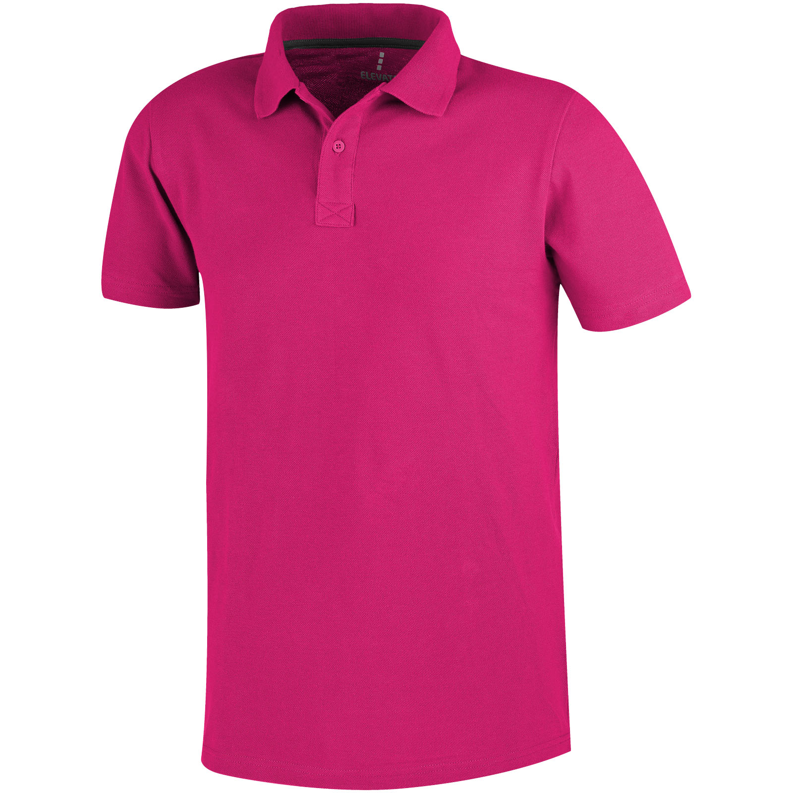 Kołnierzyk z płaskiego splotu. Plisa z dwoma guzikami. Podwójny scieg. Kontrastowa taśma wzmacniająca na karku. Guziki z wygrawerowanym logo w kolorze materiału. Metka wdrukowana transferem dla lepszego komfortu. Splot Piqué100% Bawełna, 160 g/m2.