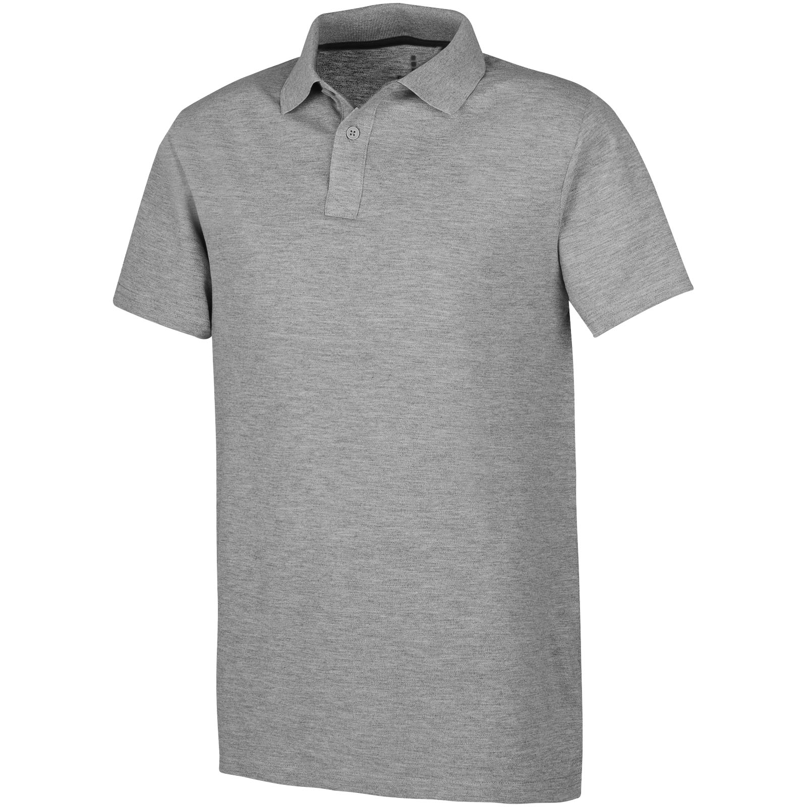 Kołnierzyk z płaskiego splotu. Plisa z dwoma guzikami. Podwójny scieg. Kontrastowa taśma wzmacniająca na karku. Guziki z wygrawerowanym logo w kolorze materiału. Metka wdrukowana transferem dla lepszego komfortu. Splot Piqué100% Bawełna, 160 g/m2.
