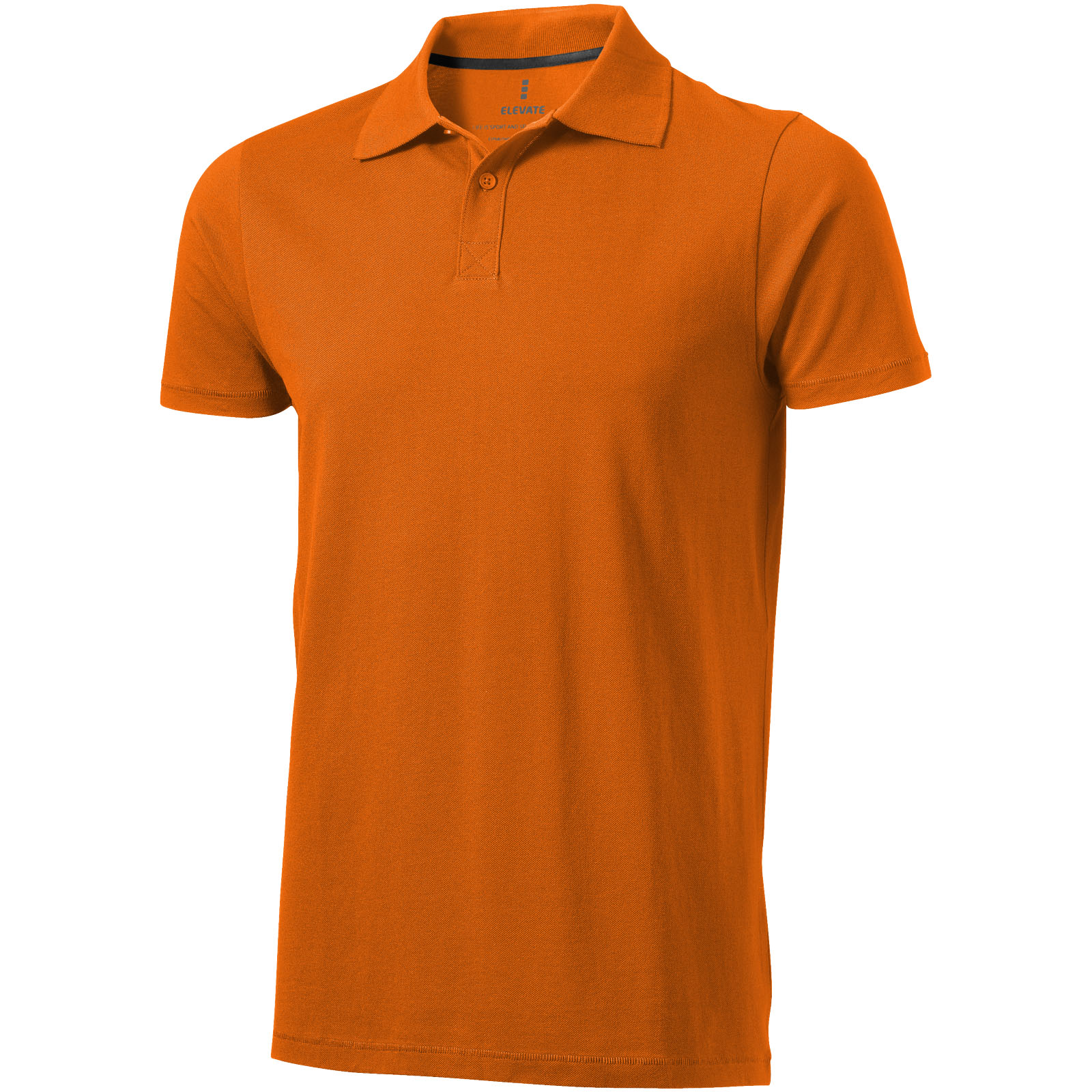 Kołnierzyk z płaskiego splotu. Wykończenie ściegiem typu pick. Plisa z dwoma guzikami. Satynowa taśma wzmacniająca w kołnierzyku. Guziki z wygrawerowanym logo w kolorze materiału. Metka wdrukowana transferem dla lepszego komfortu. Splot Piqué100% Bawełna, 180 g/m2.