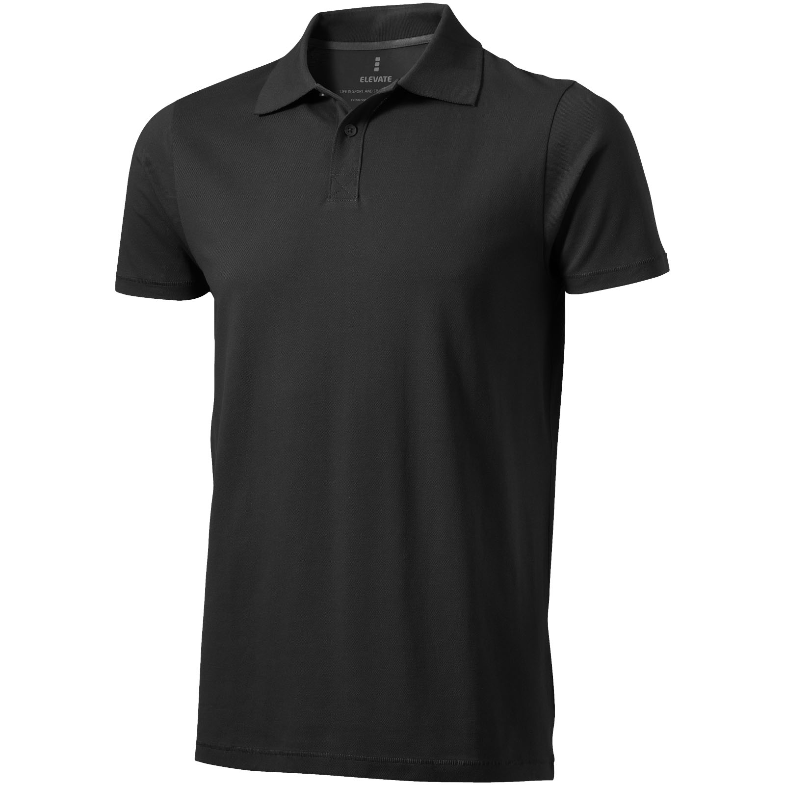Kołnierzyk z płaskiego splotu. Wykończenie ściegiem typu pick. Plisa z dwoma guzikami. Satynowa taśma wzmacniająca w kołnierzyku. Guziki z wygrawerowanym logo w kolorze materiału. Metka wdrukowana transferem dla lepszego komfortu. Splot Piqué100% Bawełna, 180 g/m2.