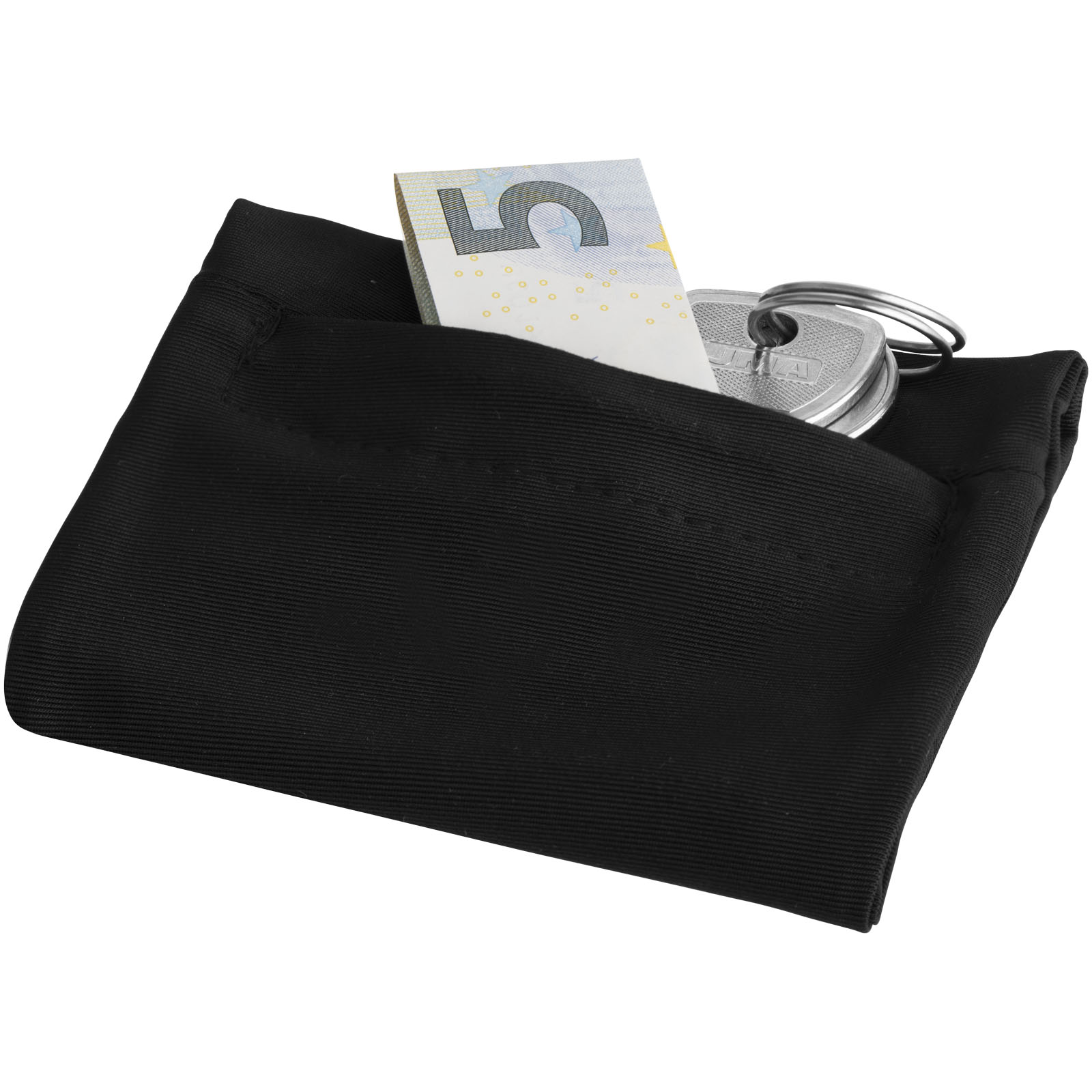 Miękka i wygodna opaska na nadgarstek z poliestru z zamkiem błyskawicznym pomieści Twoje wartościowe przedmioty. 70% Poliester, 30% Elastan.