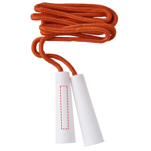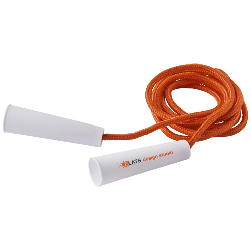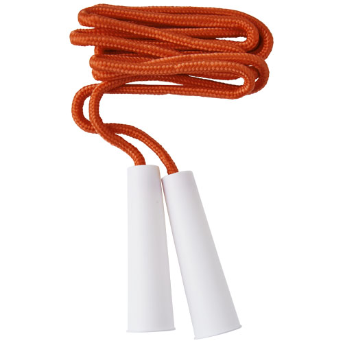 2-metrowa, kolorowa skakanka z białymi plastikowymi rączkami. Zgodność z EN71. Poliester, Plastik.
