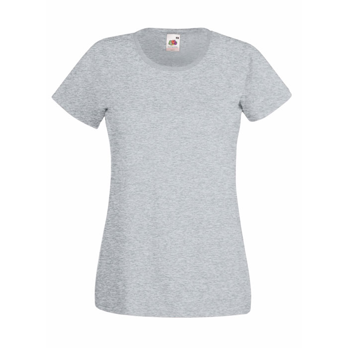 165 g/m2 (White: 160 g/m2). 100% bawełna (przędza Belcoro®), Heather Grey: 97% bawełna, 3% poliester. Kobiecy fason. Boczne szwy. Okrągły dekolt ze ściągaczem z dodatkiem elastanu i taśmą na karku. Idealny do nadruków.