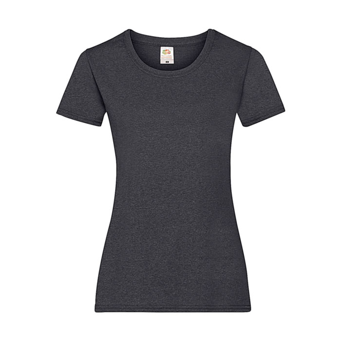 165 g/m2 (White: 160 g/m2). 100% bawełna (przędza Belcoro®), Heather Grey: 97% bawełna, 3% poliester. Kobiecy fason. Boczne szwy. Okrągły dekolt ze ściągaczem z dodatkiem elastanu i taśmą na karku. Idealny do nadruków.